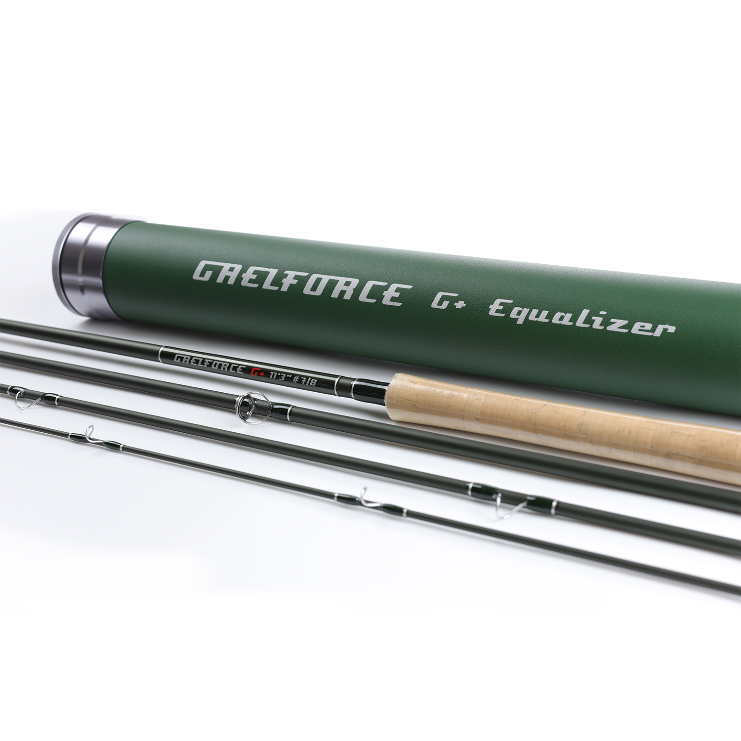 • Aluminum rod tube in GAELFORCE Green with laser-engraved rod cap and a high-quality cloth bag with rod identification
